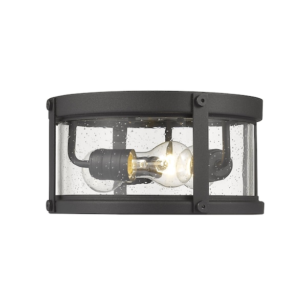 Roundhouse 3 Light Outdoor Flush Ceiling Mount Fixture, Black And Clear Seedy