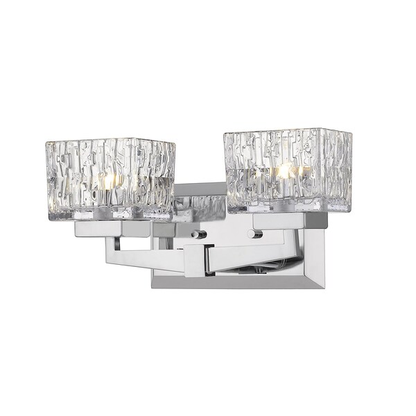 Shiny chrome brings a fresh finish to the classic design of this chrome steel two-light vanity light. With crystal-cut clear glass shades, it brightens and energizes a contemporary space.