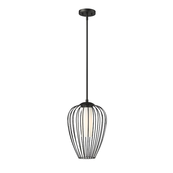 Savanti Pendant, 1-Light, 12 In.W x 16.5 In.H, Matte Black/White Opal