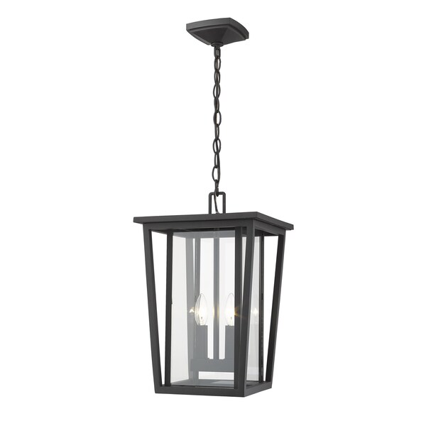 Seoul 2 Light Outdoor Chain Mount Ceiling Fixture, Black & Clear