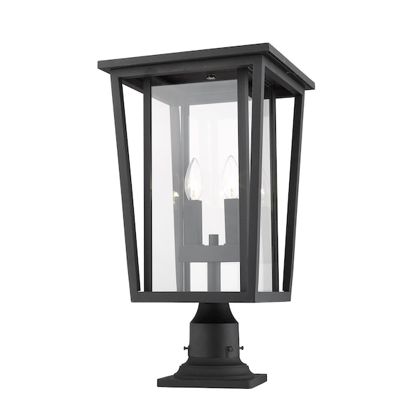 Seoul 2 Light Outdoor Pier Mounted Fixture, Black & Clear