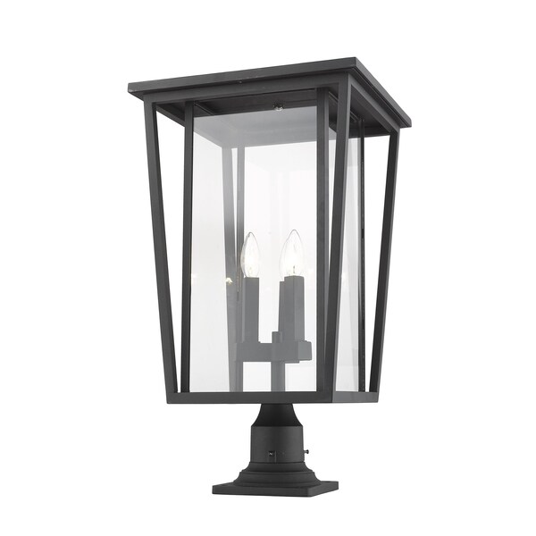 Seoul 3 Light Outdoor Pier Mounted Fixture, Black & Clear