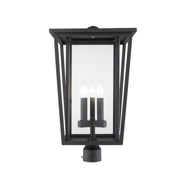 Seoul 3 Light Outdoor Post Mount Fixture, Black & Clear