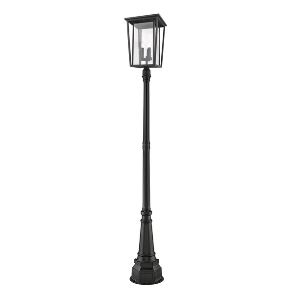 Seoul 3 Light Outdoor Post Mounted Fixture, Black & Clear