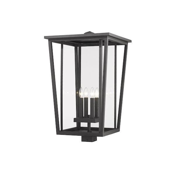 Seoul 4 Light Outdoor Post Mount Fixture, Black & Clear