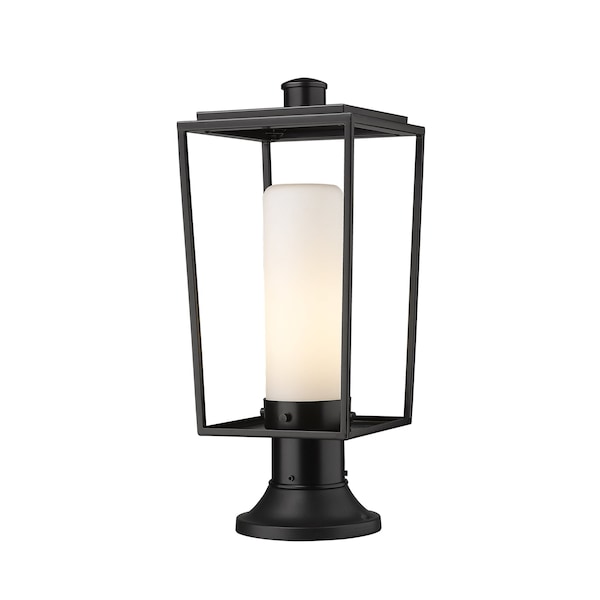 Sheridan 1 Light Outdoor Pier Mounted Fixture, Black & White Opal