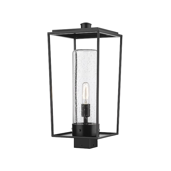 Sheridan 1 Light Outdoor Post Mount Fixture, Black And Seedy