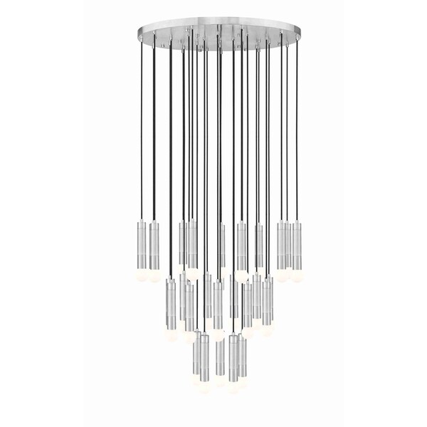 Capture the magic of modern simplicity with a striking 27-light round chandelier. It's a gorgeous display of elongated tubes and a brushed nickel finish, offering gleaming elegance over your living or dining room setting. Braided cord ensures an upgraded effect, delivering on a designer aesthetics in a refined home or commercial space.