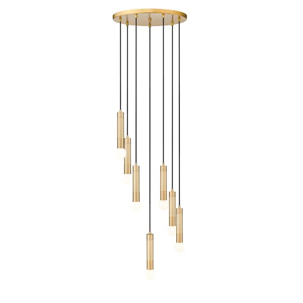 Create an aura of warm sophistication over your living or dining room with this modern seven-light chandelier. Its round canopy hosts varied lengths of braided cords that create a staggered, spiraling effect perfect for dimensionality in a refined setting. Its modern gold finish is elegant and warm, delivering on inviting aesthetics perfect for family and friends.