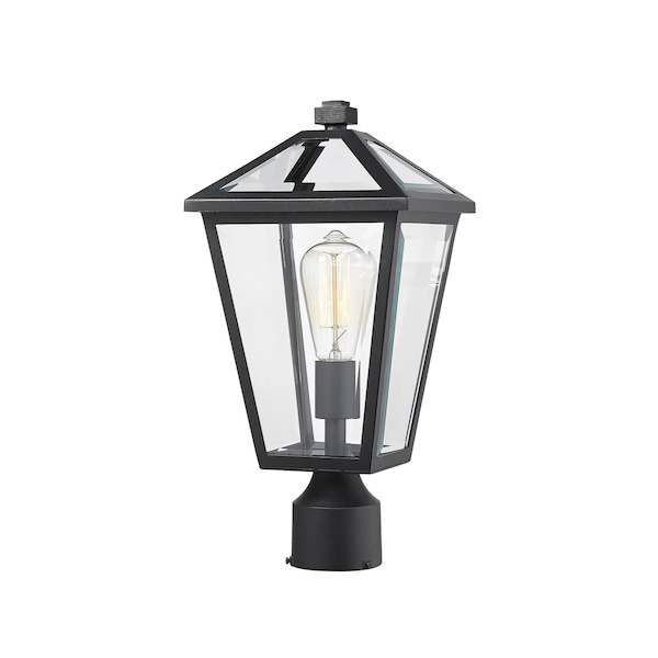 Talbot 1 Light Outdoor Post Mount Fixture, Black & Clear Beveled
