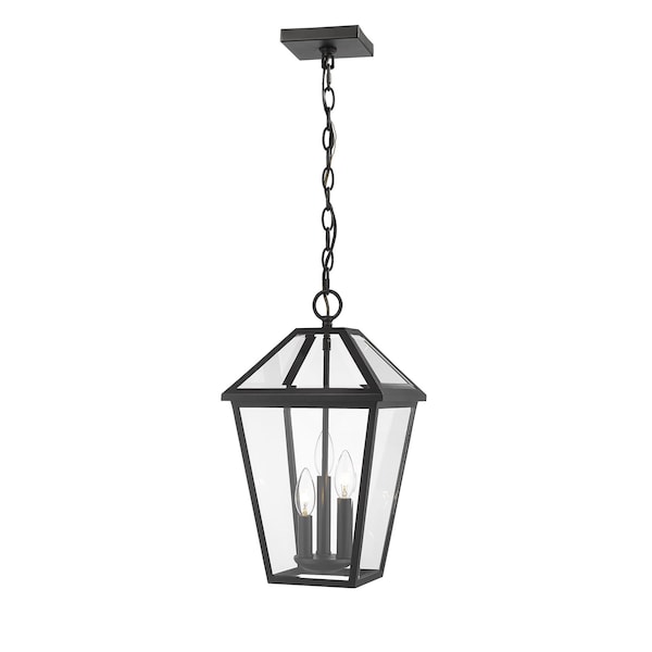Talbot 3 Light Outdoor Chain Mount Ceiling Fixture, Black & Clear Beveled