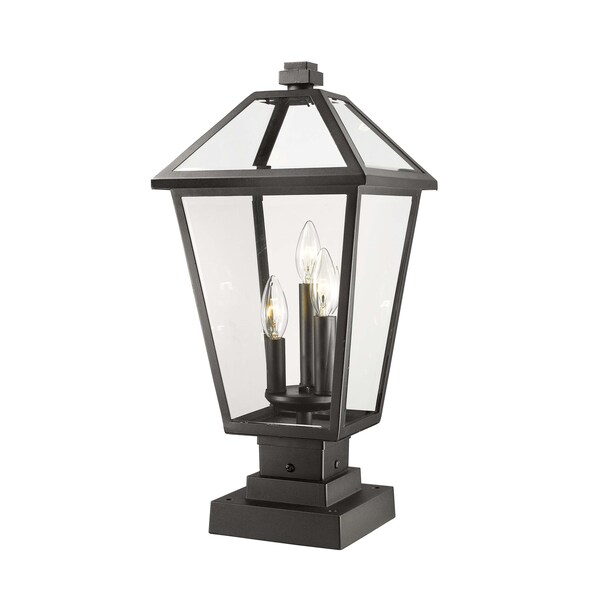 Talbot 3 Light Outdoor Pier Mounted Fixture, Black & Clear Beveled