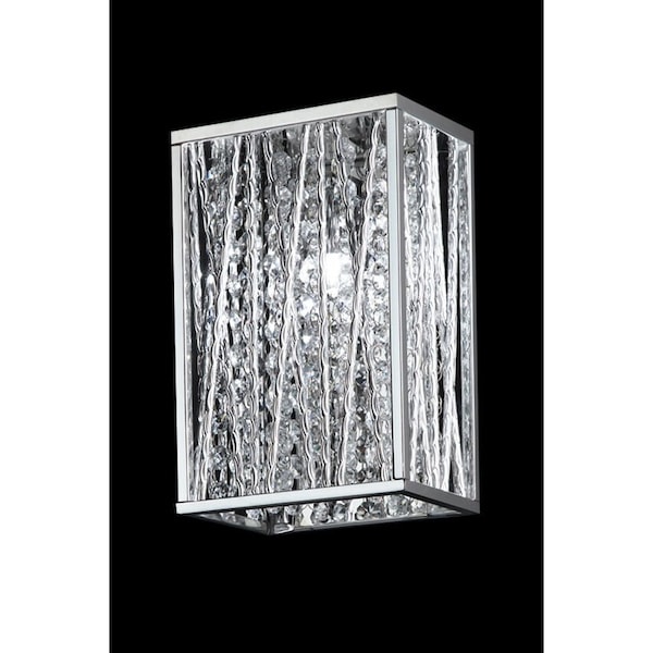 Sparkling crystals shine beautifully on this exquisite one light wall sconce, and are paired perfectly with chrome hardware.