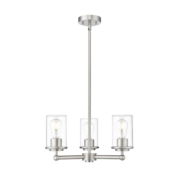 Thayer Chandelier, 3-Light, 19 In.W x 9.25 In.H, Brushed Nickel/Clear