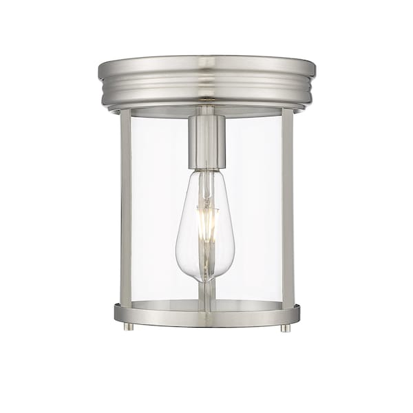 Thayer Flush Mount, 1-Light, 9.25 In.W x 11 In.H, Brushed Nickel/Clear