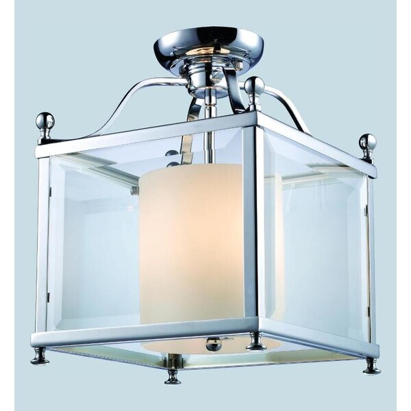 This semi-flush fixture maybe small in size but it is big on looks. This fixture will provide any room of the house with unique modern styling, thanks to chrome geometric shapes and clear beveled on the outside of the fixture. On the inside is a warm glowing matte opal glass, sure to provide any room with the right amount of light.
