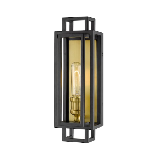 Exquisitely crafted with bold, bronze lines surrounding a gleaming, olde brass frame, this single-light wall sconce will illuminate your home in style. This handsome fixture looks especially elegant in a bedroom, or with one placed on each side of a bathroom mirror.