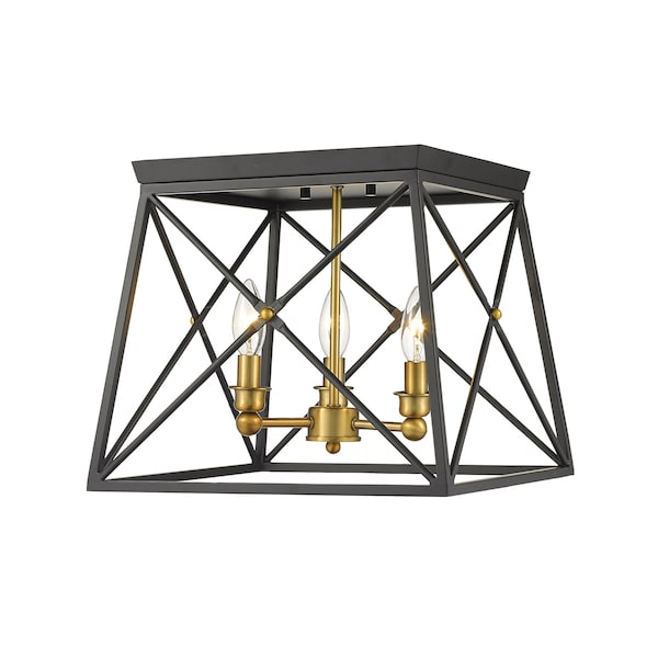 Trestle 3 Light Flush Mount, Matte Black & Olde Brass