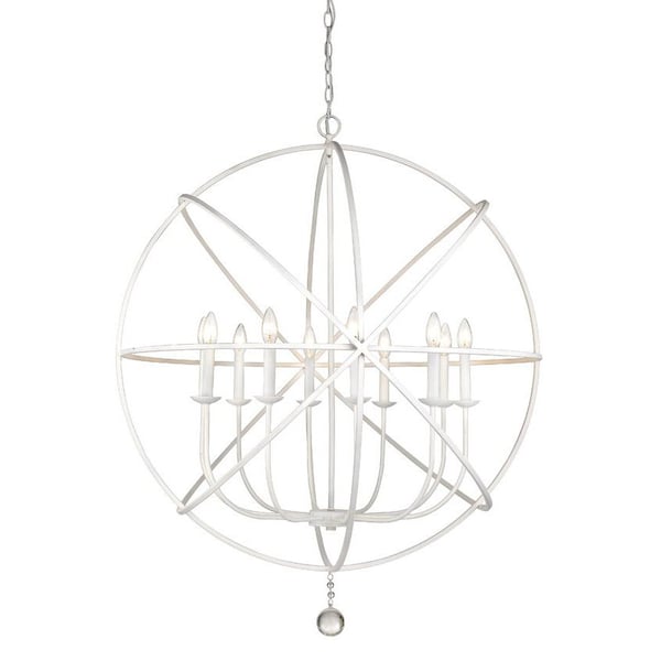 Matte white finishing over an open-orb steel frame marks a fresh starting point for this customizable ten-light chandelier. Delivering a spicy, space-inspired atomic look, its candelabra-style bulb bases bring a softening effect, while customizable options to mix up finishes on its frame interior, finials, and bulb bases make this a superb choice for a tailored living space decor.