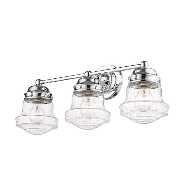 Vaughn 3 Light Vanity, Chrome And Clear Seedy