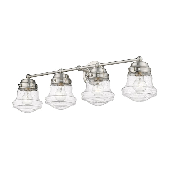 Vaughn 4 Light Vanity, Brushed Nickel And Clear Seedy