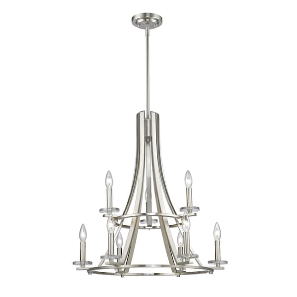 Graceful sweeping arms leading to classic candelabras sitting atop crystal bobeches. A classic design contemporized with clean lines and finished in brushed nickel.