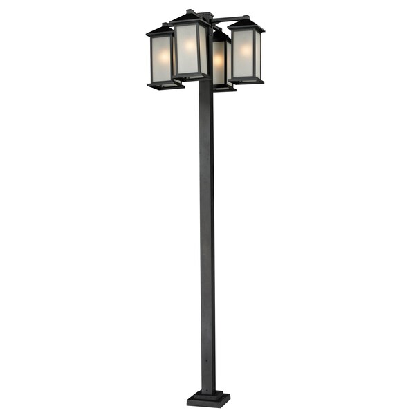 Clean, straight lines and rectangular detailing define the classic styling of this four light outdoor post light. White seedy glass panels create an elegant glow, while the cast aluminum hardware finished in black can withstand nature’s seasonal elements.