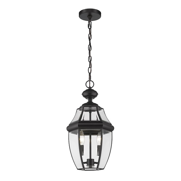 Westover 2 Light Outdoor Chain Mount Ceiling Fixture, Black & Clear Beveled