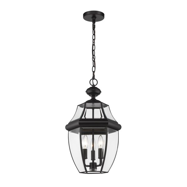 Westover 3 Light Outdoor Chain Mount Ceiling Fixture, Black & Clear Beveled