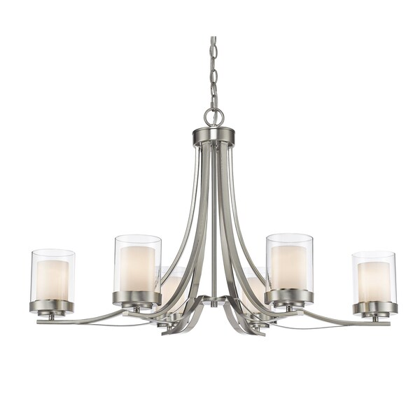 Willow 6 Light Chandelier, Brushed Nickel & Clear Outside with Matte Opal Inside
