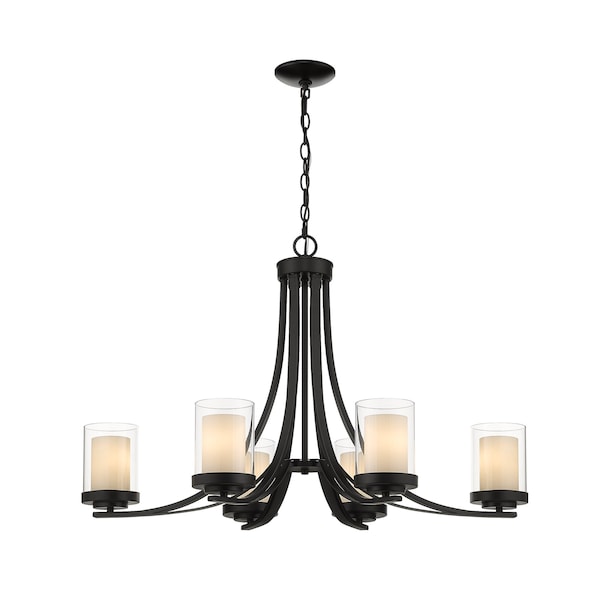 Willow 6 Light Chandelier, Matte Black, Inner White & Outer Clear