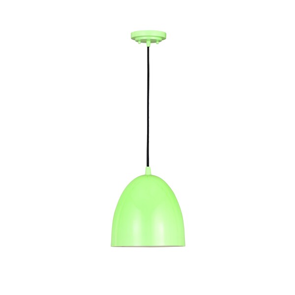 Solve lighting challenges in compact spaces with a cheeky, Mid-Century Modern style fixture that becomes part of a design scheme. The Z Studio Dome pendant brings targeted lighting to casual nooks and reading spaces, bedrooms and kitchens. With a farmhouse feel, this versatile dome-style pendant offers a soft mint finish iron shade and matching canopy, as a charming braided black cord adds finishing touches.