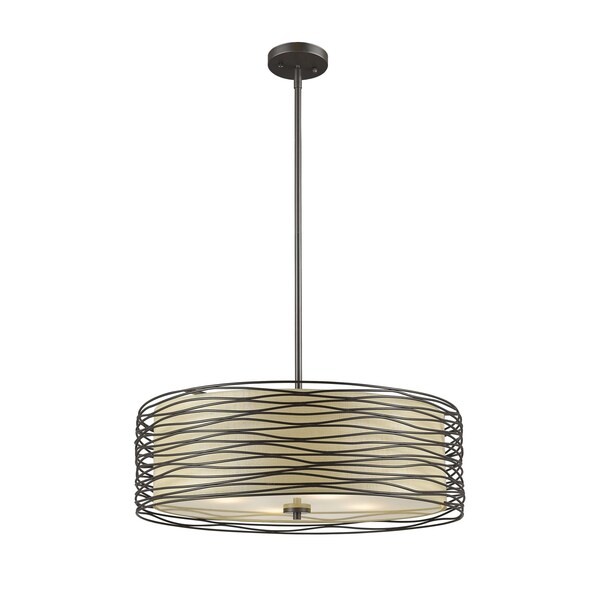 Zinnia 3 Light Pendant, Bronze & Flax Linen (Discontinued)