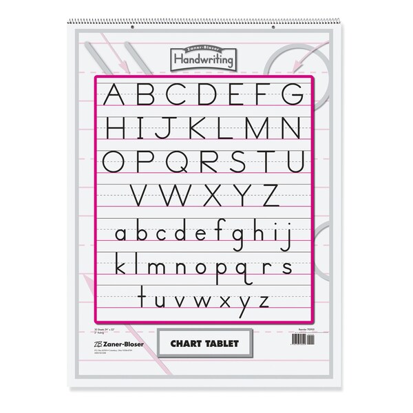 Quality White paper ruled on both sides with a manuscript cover. Spiral bound, 2-hole punched, with heavy front and back covers. This tablet is ruled the short way and has Red baselines. Works great for classroom anchor charts. Recyclable. 30-Sheets.