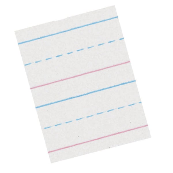 Clean White sulphite paper printed on both sides with a red baseline and a dotted blue midline, making it easy for students to find the headline quickly and easily. It's also great for tracking students' handwriting progress over time, and helps build a solid foundation for students to write legibly and communicate effectively through writing. Ruled 0.625" (long way), 0.3125" dotted midline, 0.3125" skip space. For Grade 1. Recyclable. Measures 10.5" x 8". Each pack includes 500 sheets. Sold as 2 packs for a total of 1000 sheets.