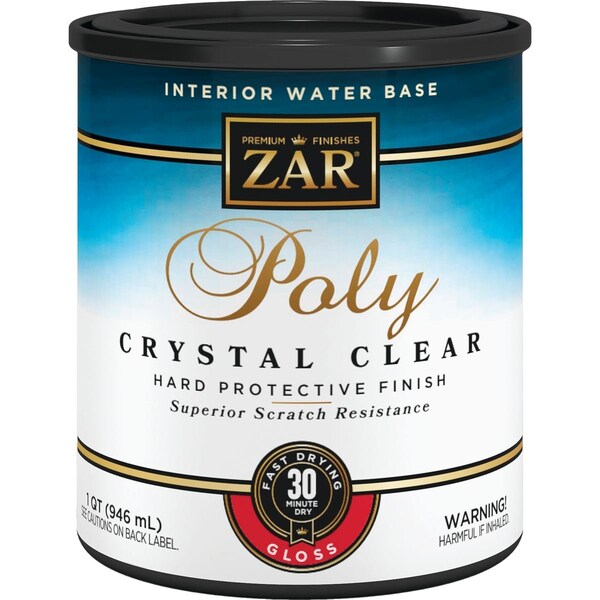 This nonyellowing environmentally safe clear wood finish is specially formulated to protect and beautify cabinets furniture wall paneling woodwork and moderately used floors. The water-based polyurethane dries crystal clear making it an ideal finish to use over light-colored wood or white stains. Aqua Zar meets all environmental standards for low emission of solvent vapors. Use on properly prepared new wood. Remove any wax lacquer shellac or paint completely from old surfaces before finishing. Do not use steel wool. Follow can instructions. If staining apply a good quality oil-based or water-based stain. Apply with a clean synthetic fiber or foam brush lambs wool applicator or pad. Do not apply with a roller. Follow all directions on the label especially when applying to floors. Allow 24 hours to dry. Recommended to use Zar original polyurethane or ultra polyurethane for heavily used floors. Covers approximately 400 to 425 Sq. Ft. per gallon. Transparency: Clear.