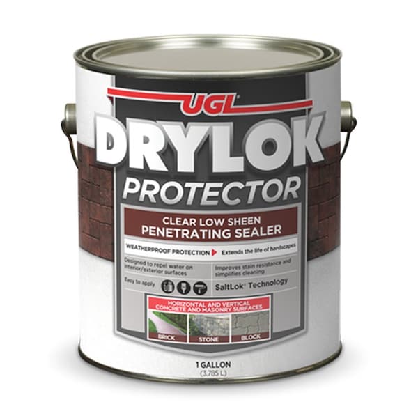 Drylok latex base concrete protector provides clear weatherproof protection against deterioration caused by de-icing salt, household cleaners, gasoline, oil, weathering and efflorescence (white, powdery, salt-like deposits visible on masonry). Drylok unique SALTLOK technology penetrates into the surface providing superior resistance to unsightly efflorescence staining often visible on brick, block and poured concrete surfaces. Drylok concrete protector seals bare masonry surfaces against dusting, staining, surface cracking and pock marking.