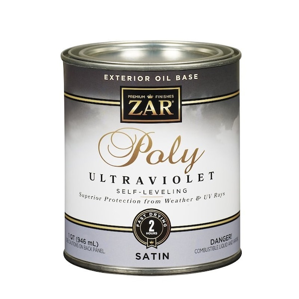 ZAR ULTRA Exterior polyurethane is an incredibly fast-drying, oil-based, clear wood polyurethane finish that dries in only 2 hrs. Formulated with UV radiation absorbers and antioxidants, it's specifically formulated to protect exterior surfaces that are subjected to direct sunlight. ZAR ULTRA exterior polyurethane is ideal for wooden marine surfaces that are located above the waterline, exterior doors fiberglass and steel, patio furniture, fences, gables and other wood surfaces exposed to extreme, harsh weather.