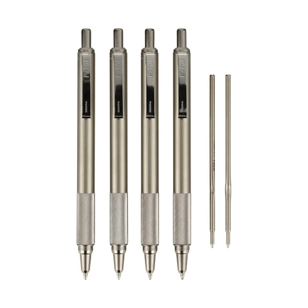 F-701 Retractable Ballpoint All Metal 0.8mm Black w Refills Bundle 6Ct, 2 x F-Refills