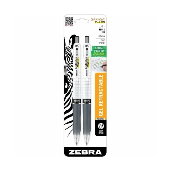 Zebra Pens,Gel,Fine,0.5mm,Retractable,2/PK,BK PEN,RT,GEL,.5M,BLK,2/PK