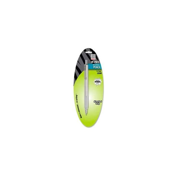 m-701 mechanical pencil features designer stainless steel from tip to clip to prevent corrosion. Easy-to-hold knurled metal grip provides writing stability. Mechanical pencil has a convenient eraser underneath the plunger that advances the lead. Refillable. Eraser/pocket clip. larger quantity quotes available. Please call 1-888-978-7759. this product arrives to most customers in 2-3 business days.