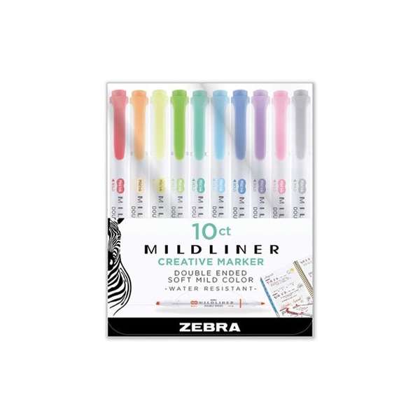 Zebra, MILDLINER DOUBLE ENDED HIGHLIGHTER, CHISEL/BULLET TIP, ASSORTED COLORS, 10 Pieces
