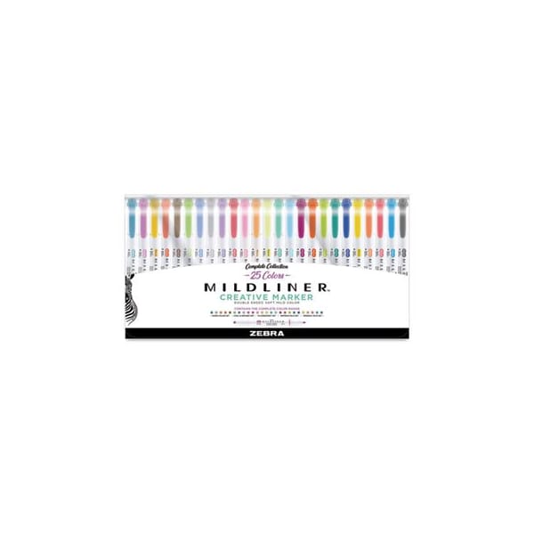 Zebra Pen Mildliner Highlighter - Fine, Broad Marker Point - Bullet, Chisel Marker Point Style - 25-/ Pack