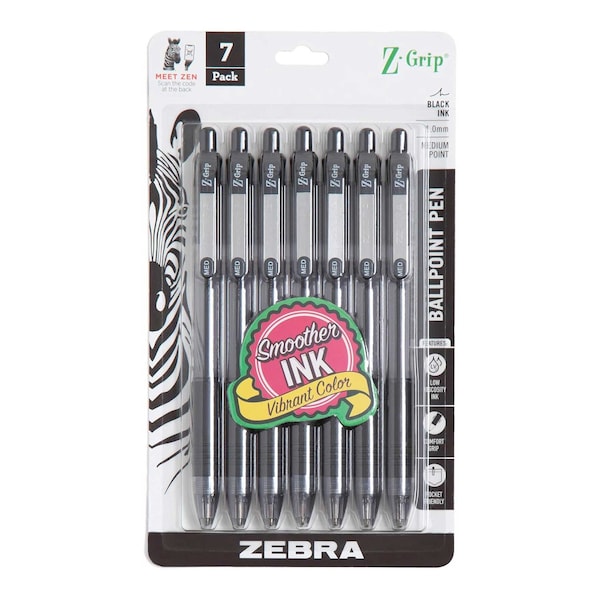 Zebra Pen Z-Grip - Medium Pen Point - 1 mm Pen Point Size - Retractable - Black - Clear Barrel - 7-/ Pack