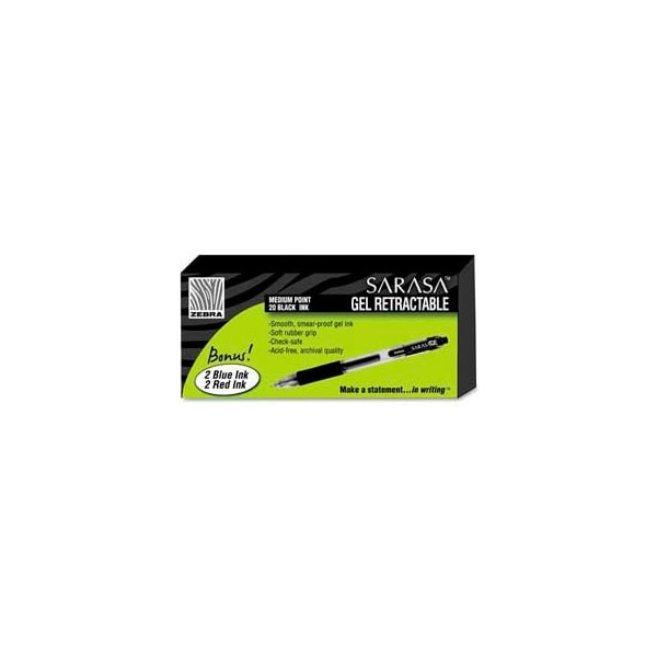 Zebra Sarasa Gel Retractable Pen, Medium 0.7mm, Black Ink, 20/Pack + 4 Bonus Pens