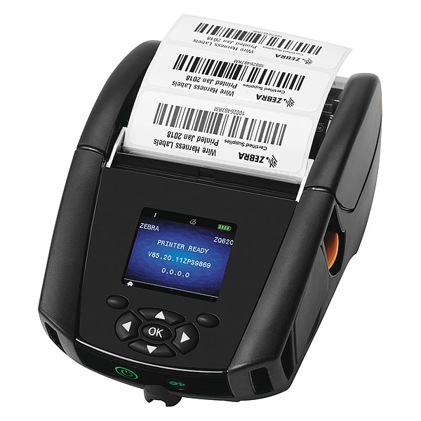 Mobile Printer, Mobile Barcode Printer Type, Push Button Screen Type, 2.8 in Max. Print Width, 203 dpi Printer Resolution, 4.5 in/sec Print Speed, Tear Off Dispensing Style, Bluetooth Wire Communication, Printer Series ZQ600, For Core Dia. 3/4 in, 6 3/4 in Overall Depth, 3 1/4 in Overall Height, 4 5/8 in Overall Width, 1.6 lb Weight, Printing Software Compatibility CPCL, EPL, ZPL, 3,250 mAh Battery Power Source, 100 to 240V AC Voltage