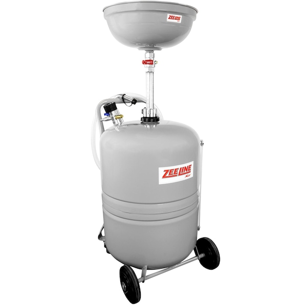 This 21Gallon Oil Drain was built with professionals in mind and was designed to be used when changing oil, transmission fluids, and more for automobiles and light trucks This oil drain can be placed under a lifted vehicle utilizing the stable fixed wheel and fixed axel combination as well as the telescoping funnel to accommodate various working positions When the tank is full, pressurize the tank with an air connection after closing the appropriate valves and then drain will evacuate into your waste oil tankFeaturesPro Grade Funnel 145 inch diameter with built in screen creates a wide area to catch fluids and prevent drain plugs and gaskets from falling into the tankIntegrated Level Gauge Easy to view built in sight gauge allows users to know when it is time to empty the tankSimple Air Evacuation Evacuate the drain by using an air connection and connecting to the drain No need to invest in more expensive diaphragm pump systems to evacuateMore Stability The fixed axel and casters configuration makes moving under a vehicle simple and helps the drain stay put, unlike models with 4swivel casters that move on uneven floorsBuilt with safety in mind Includes a pressure relief safety valve to prevent over pressurization and downtube ball valve to prevent surprise oil showers or spillage in case the drain is knocked over6inch fixed wheels and 3inch casters5foot evacuation hose with JhookCan be used with oil, transmission fluid, and antifreeze145 inch diameter funnelDurable steel tank