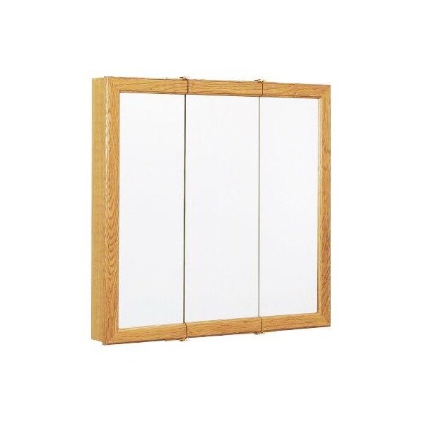 2334 W x 2558 H x 412 D, 24 Oak Frame Triview Medicine Cabinet, MDF Body, 2 Fixed Shelves, Surface Mount