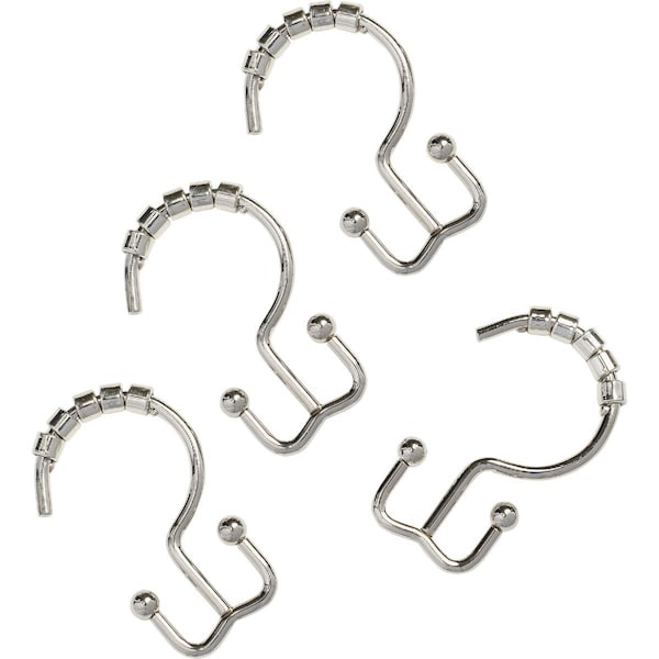 Zenna Home Chrome Double Roller Shower Curtain Hook, 12 Count