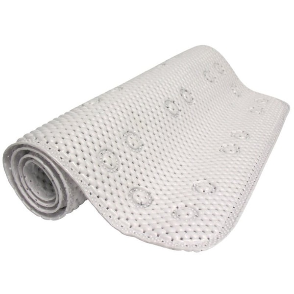 Foam Shower Mat, 36 in L, 17 in W, PVC, White